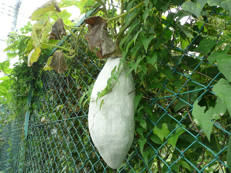 見ての通り長いかぼちゃです。畑の主にとって、この種類は初挑戦のようです。
