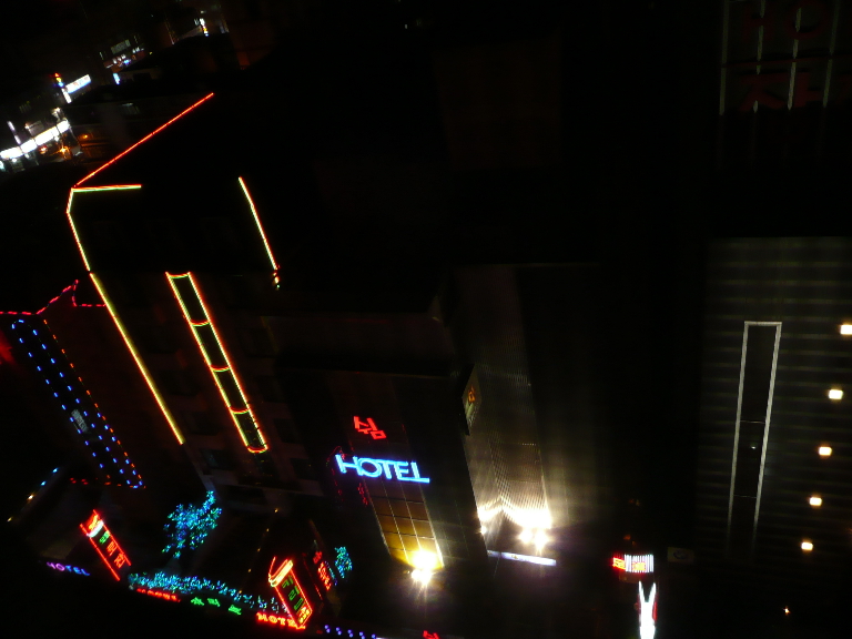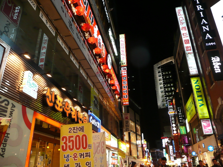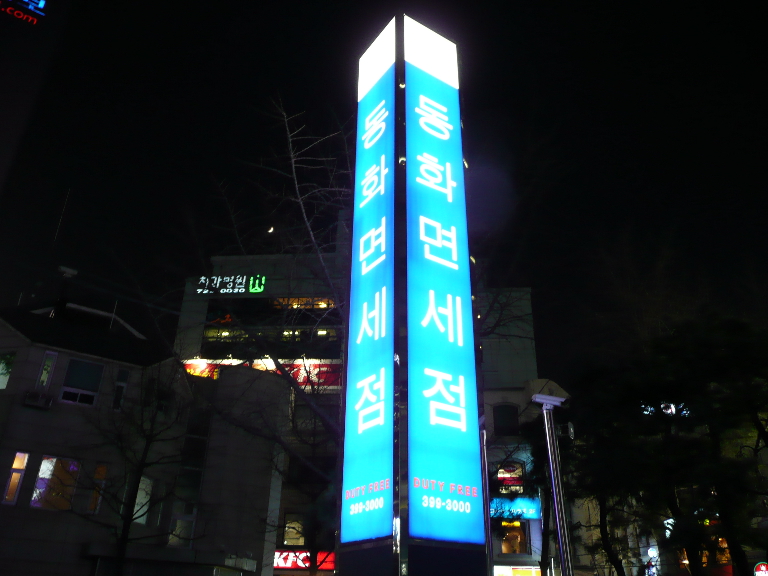 レストランに行く前にまずは免税店へ。真ん中は東亜日報のビルです。
