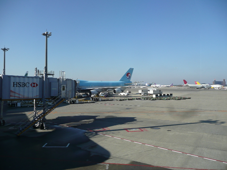 この飛行機に乗りました。 仁川空港に着後バスを待っている間に!