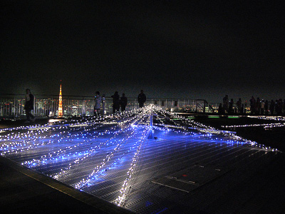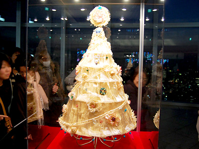 『六本木ヒルズの展望台、東京タワー方面を飾っている「カサブランカツリー」
