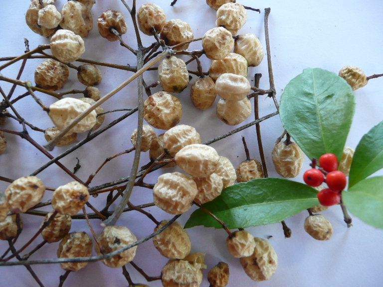 赤い実の千両と比べると大分大きな実ですよね。大きな種です。