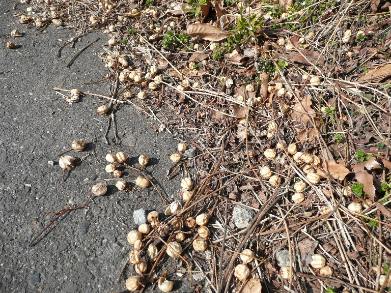 道路にもたくさん落ちていて果肉も大分乾燥しています。