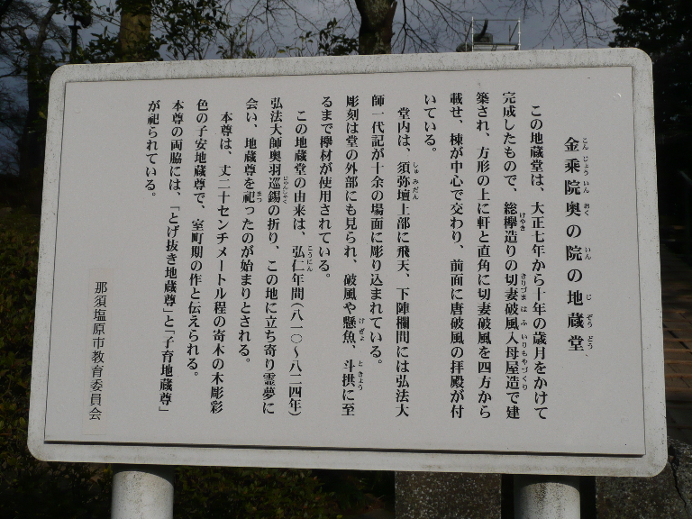 いわれの書かれた立て札もあります。ものすごく古い建物と思っていたら