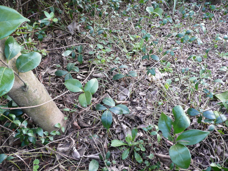 地植えの椿の根元にはこぼれ種から発芽した小さな苗が案外あるものです。