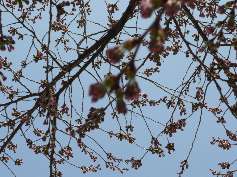 まだまだ小さい桜ですが色がきれいで見ごたえがあります。