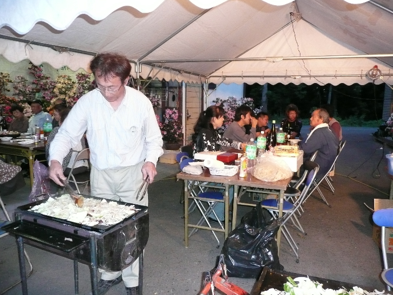 社長が自分の弟子達に焼肉を焼いているようです。とてもまめなんです