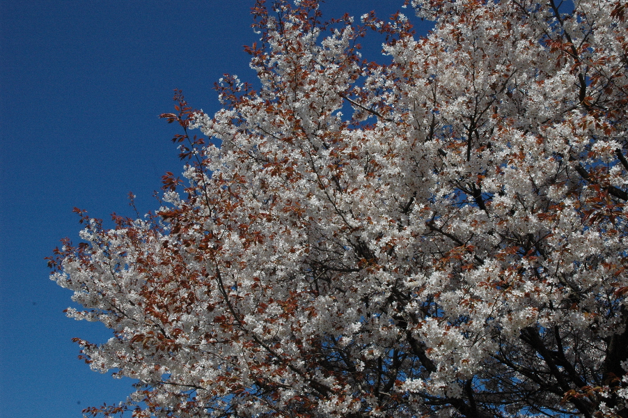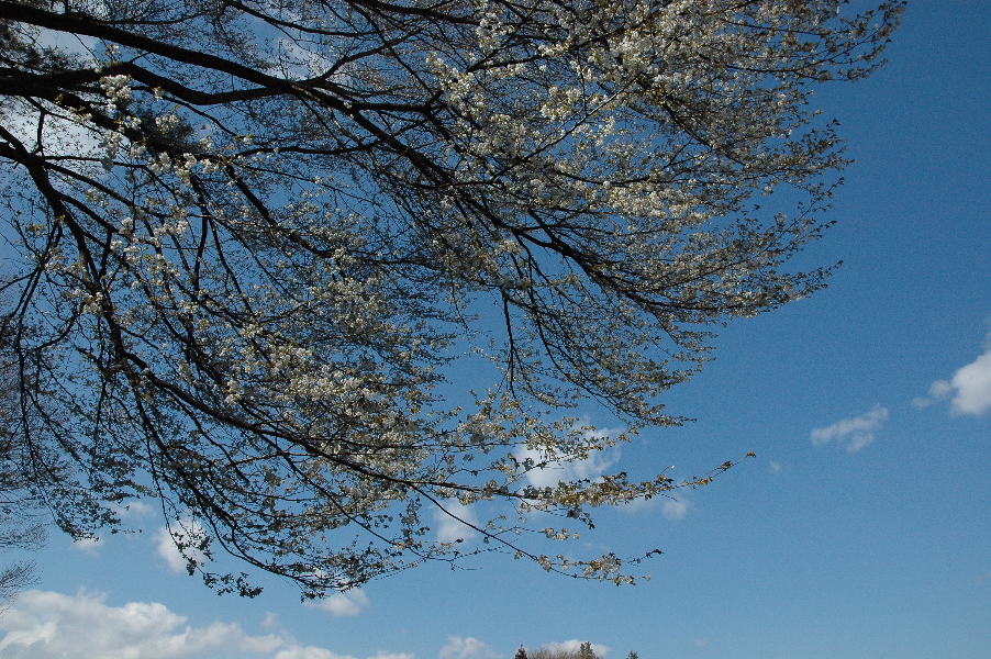 植樹されてる桜で満開です~山桜系でしょうが、ここまで咲くと見事です