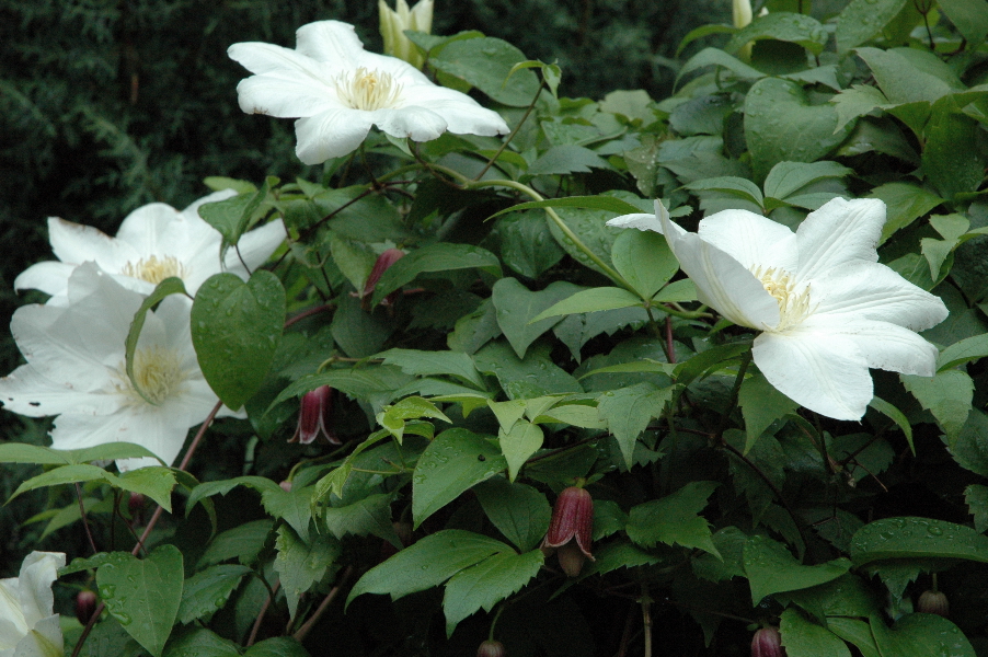 ところが今年は東側に植えておいた白いクレマチスが毎年消え入りそうな