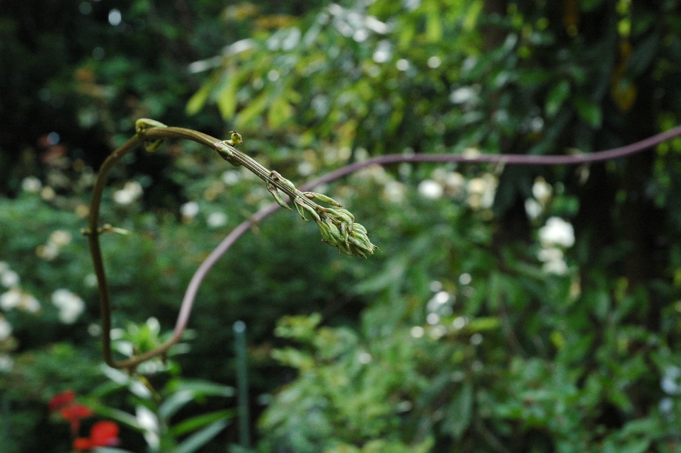 横の方にクレマチスを伝わって自然薯がツルを伸ばしていました