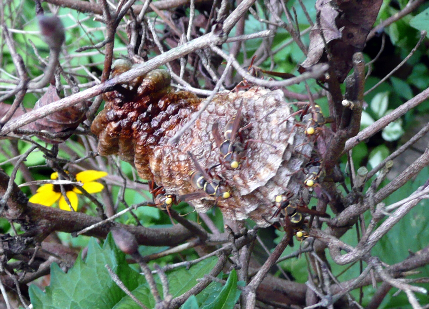 先日、この巣を揺らして夫は3ヶ所も刺されて大騒ぎでした
