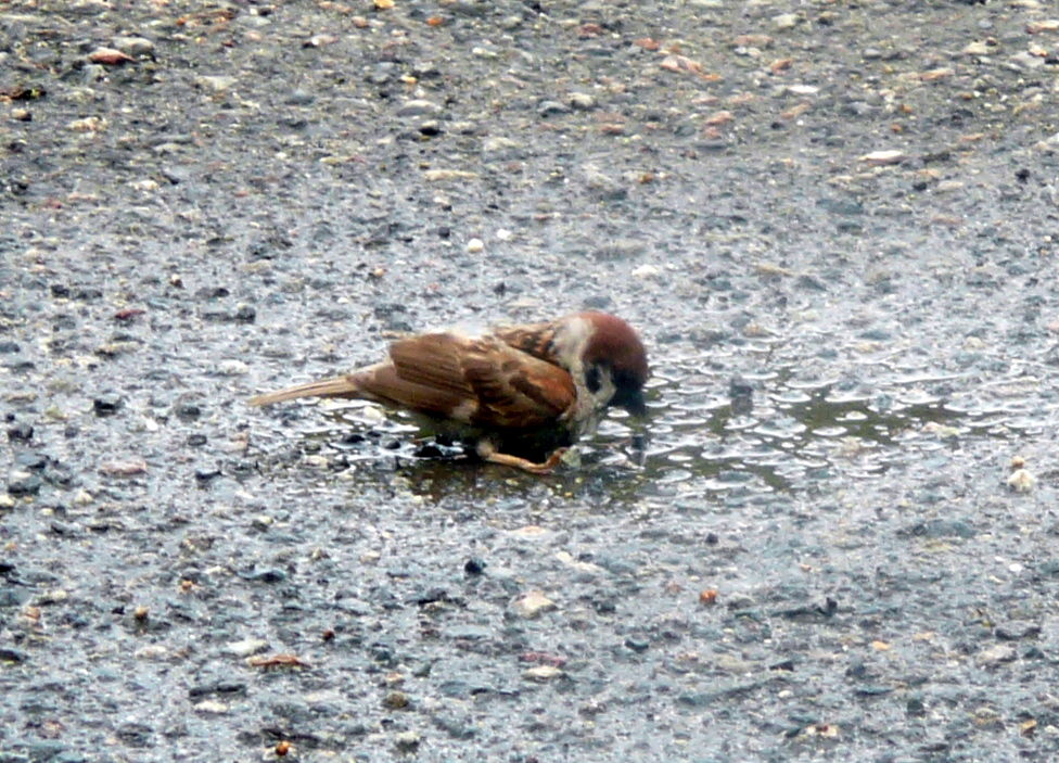 わずかばかりの水溜りとも呼べないような場所に雀が何羽も寄って来ました