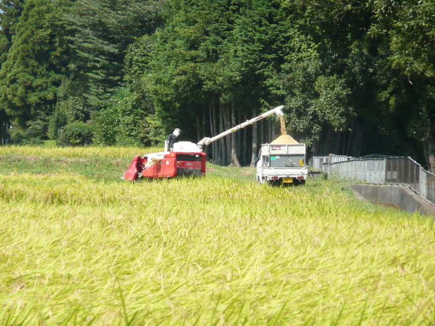 遠くの方からコンバインのガラガラと大きな音が聞こえてきます