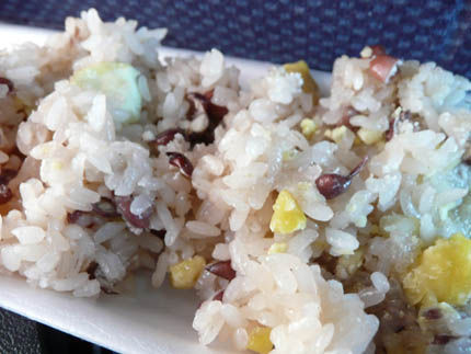 バスの中では朝食用にと手作り栗おこわが振る舞われました