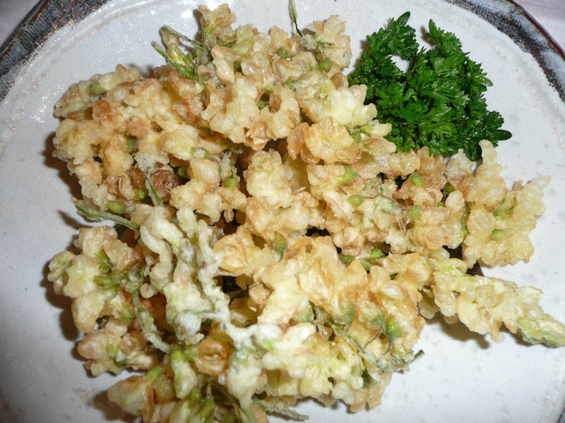 茎をつかんで花に衣を付けて揚げるだけの事~こんな簡単な食材って珍しいわ