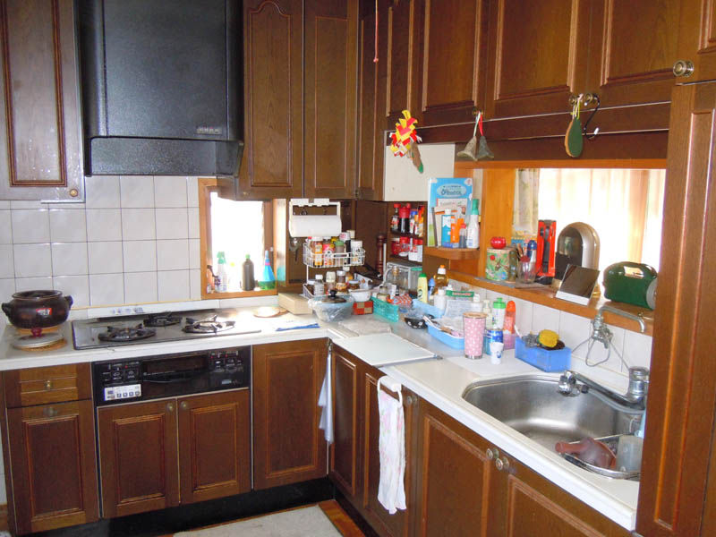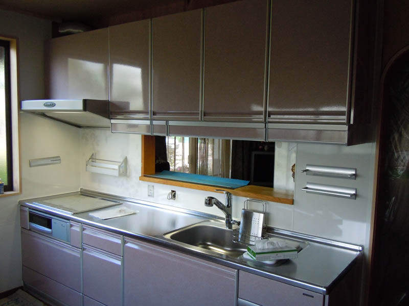 今まで入っていたシステムキッチンも無垢材仕様で立派なものです