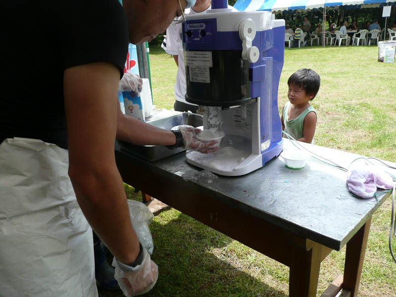 突然の夕立にもかかわらずかき氷は子どもさんには大うけです