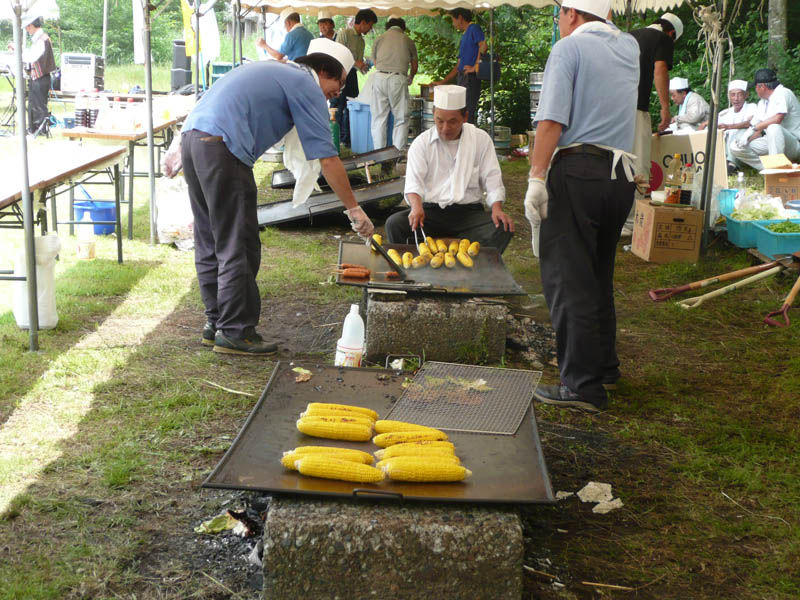 トーモロコシ焼きには羽鳥平和郷の所長さんも駆けつけて下さいまして汗だくのようです
