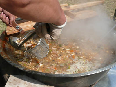 それでもキノコ汁は男性の太い腕があったればこそです。大きな鍋にすごい量です
