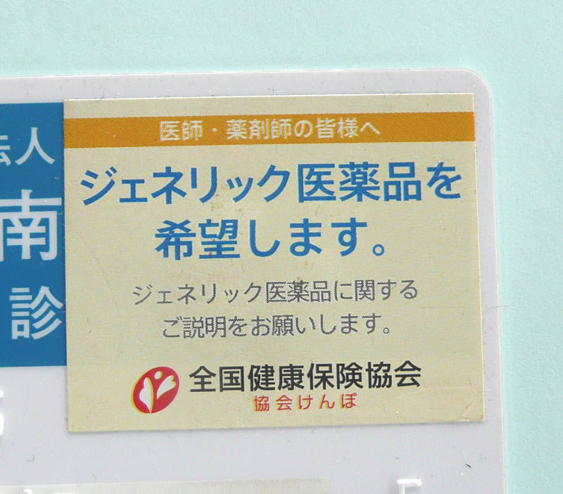 私の診察券には「ジェネリック医薬品を・・・」のシールが貼られています