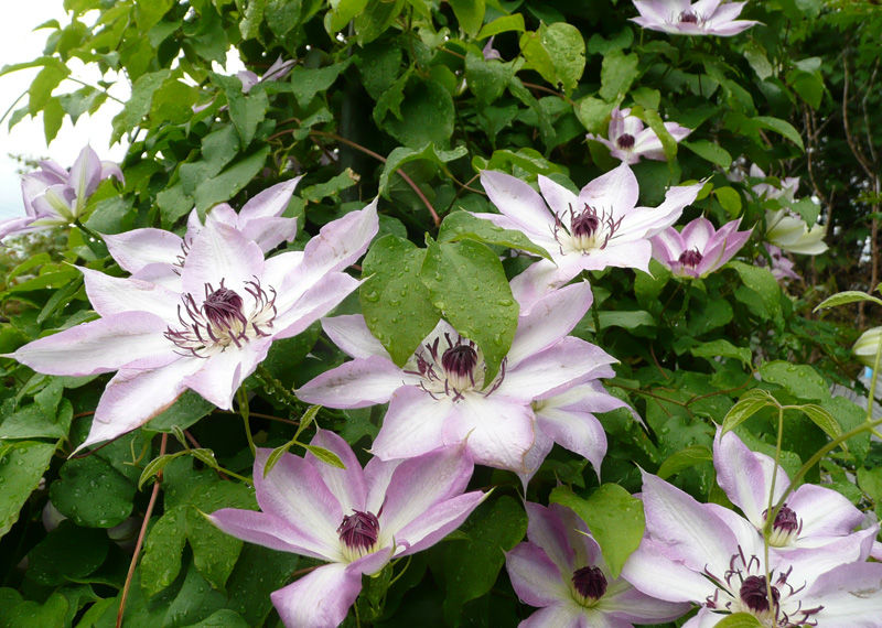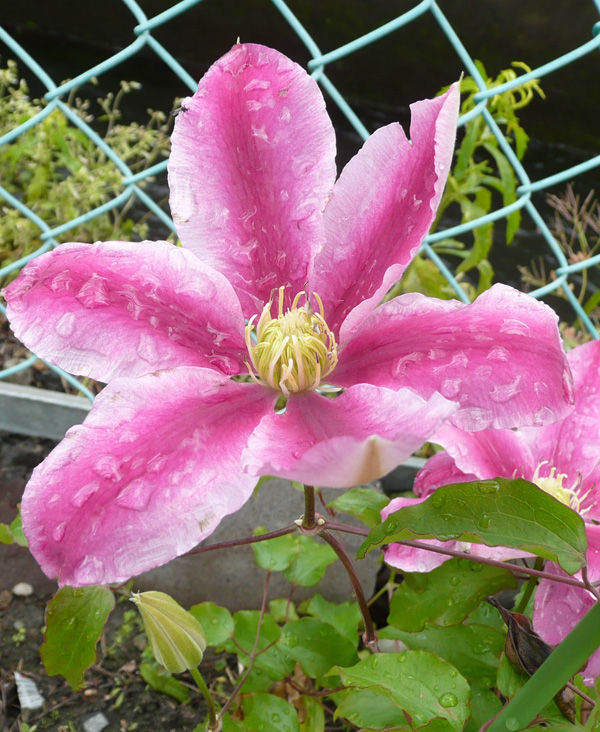 そんなわけで昨日のすさまじい夕立にも負けず頑張ったクレマチスをご覧あれ