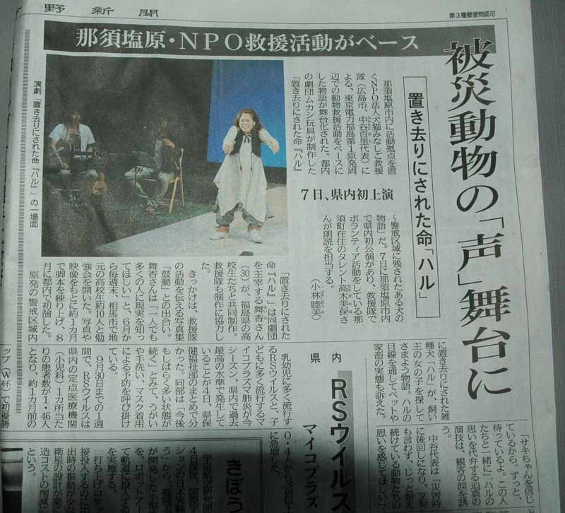 劇団ムカシ玩具が制作した「置き去りにされた命『ハル』が上演されました