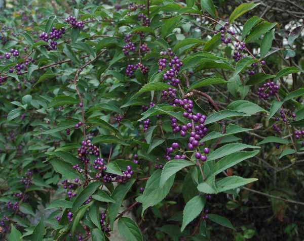 我が家の庭の片隅に植えた覚えのないムラサキシキブが実を付けて…なごみますね~