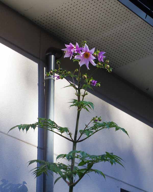 例年だと家の中に込んでいた皇帝ダリヤも今年は軒下で咲いています