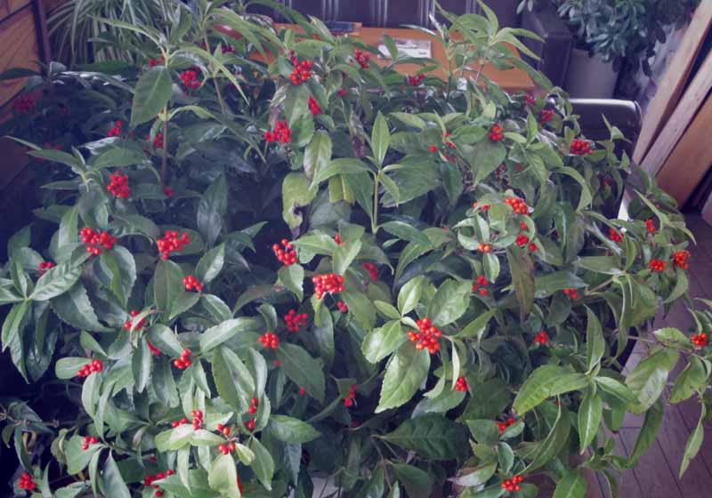 写真のセンリョウは人見工務店の事務所内で冬越ししています