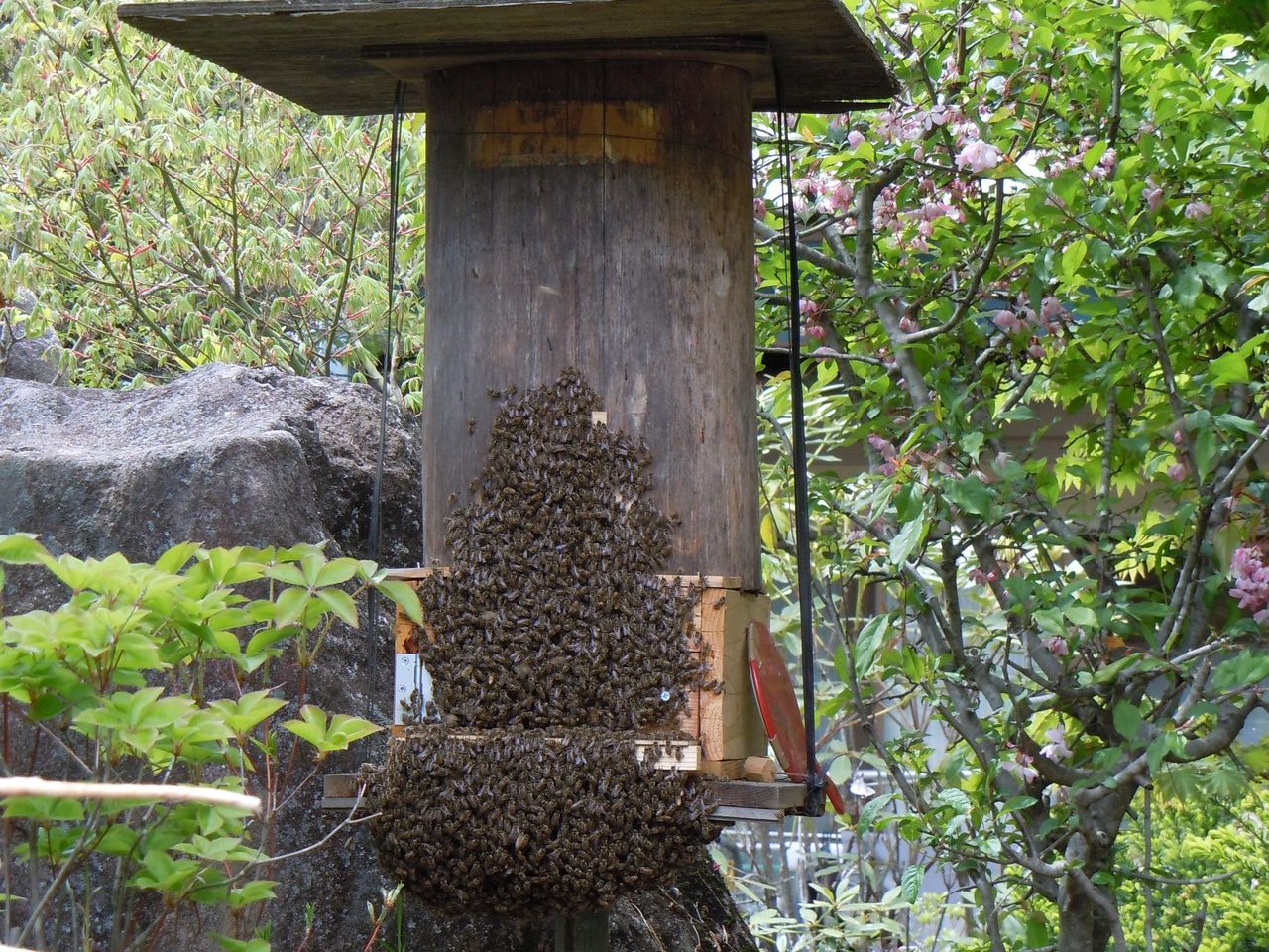 下記は日本ミツバチが昨年5月3日に分蜂しようとしている所です