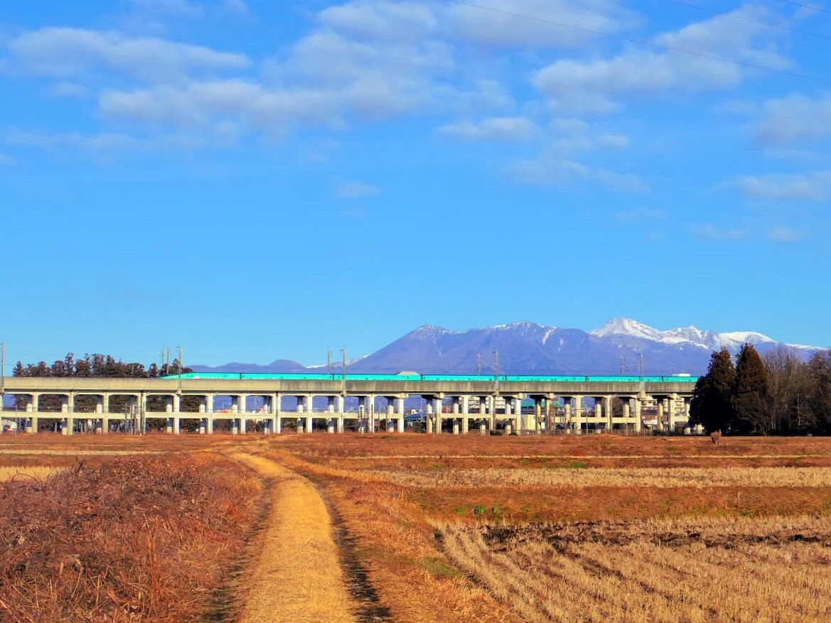 今朝の那須岳∼緑の車両は東北新幹線やまびこでしょうか