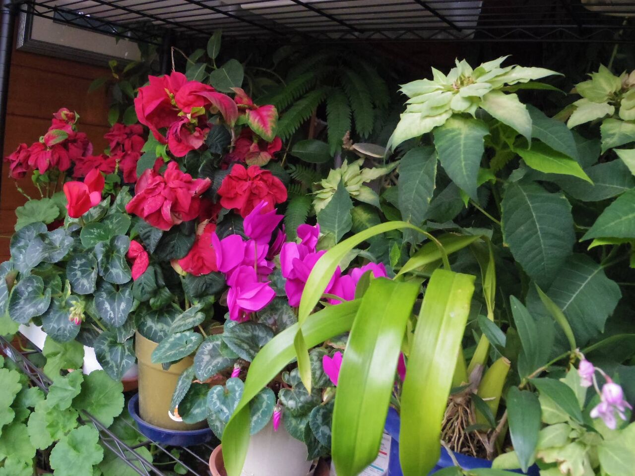 ポインセチアにクンシラン、ゼラニューム、カランコエ