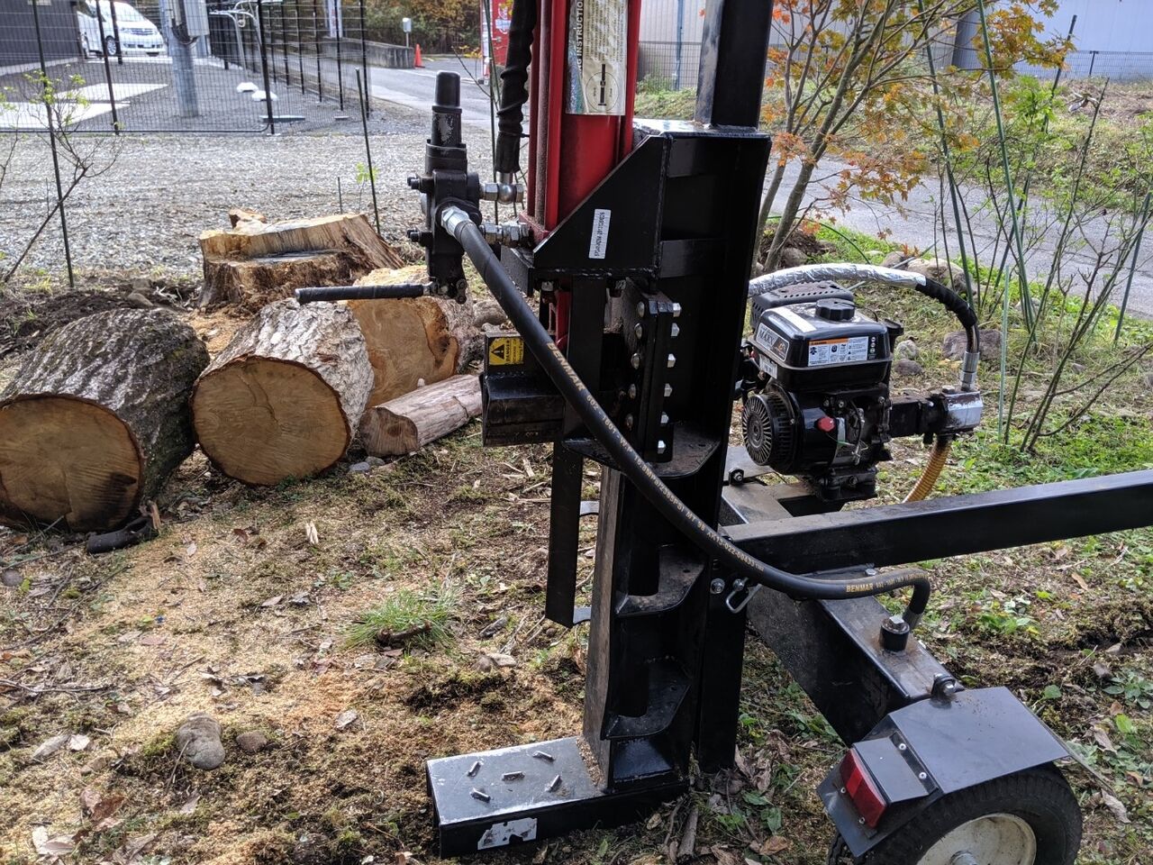 薪割り機の組み立ても、丸太の移動も力仕事です