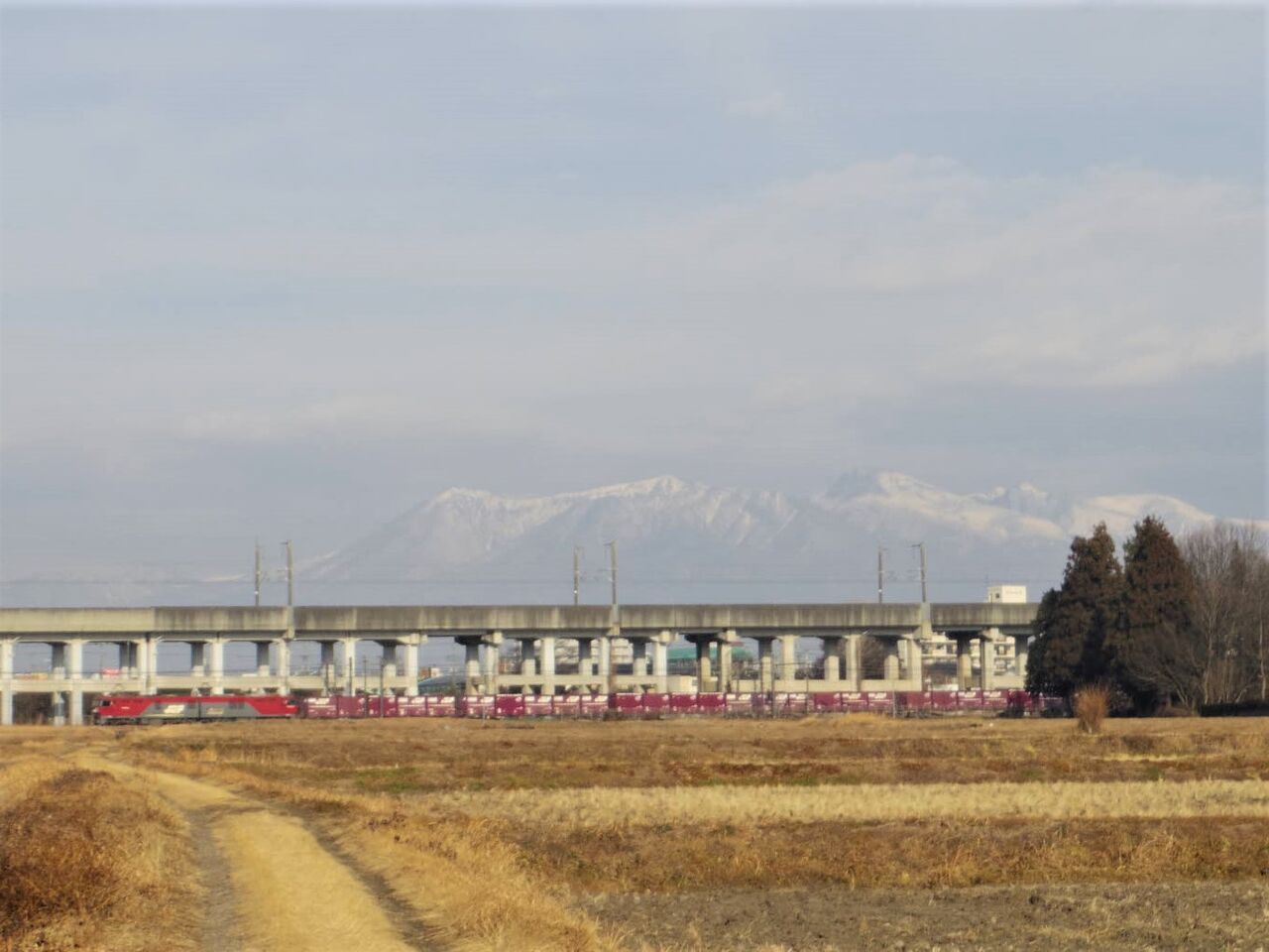 今年初撮りの那須岳にローカル線の貨物列車がビンゴ