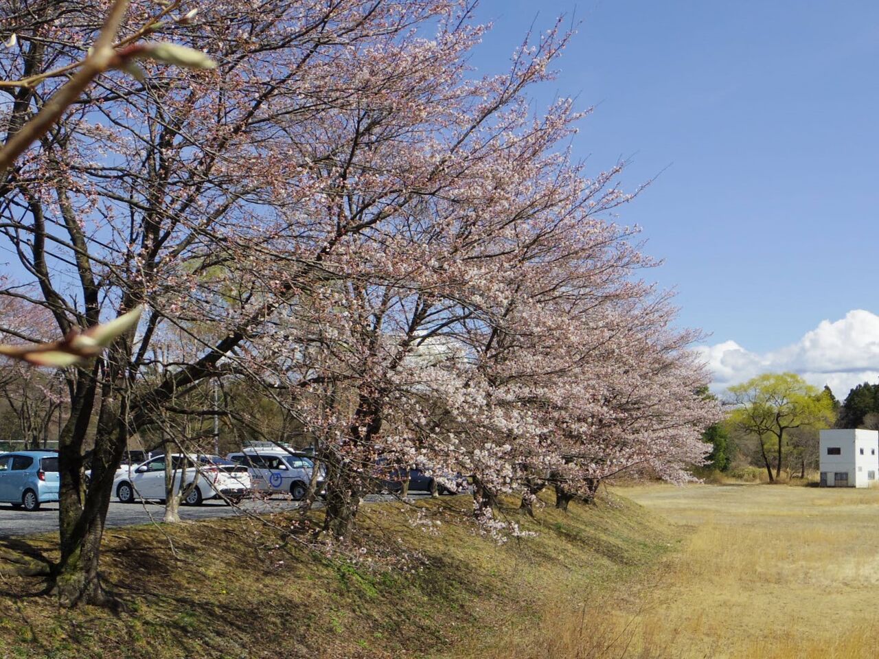 河川敷公園は三分咲きまでいってないんじゃないかの感じで