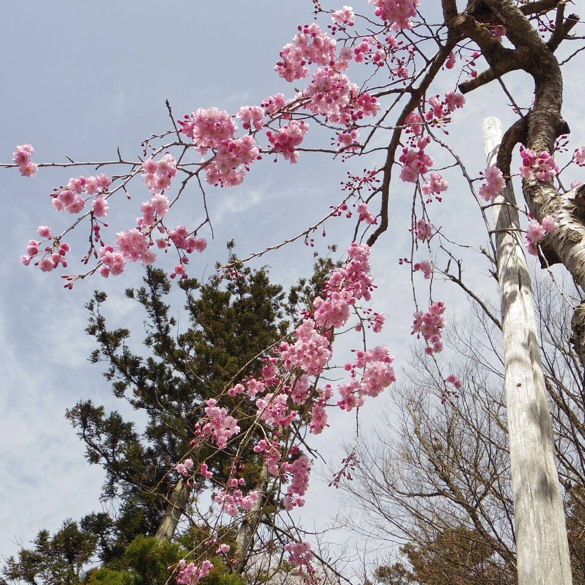 近くの道路わきには八重紅枝垂れ桜が植栽されています
