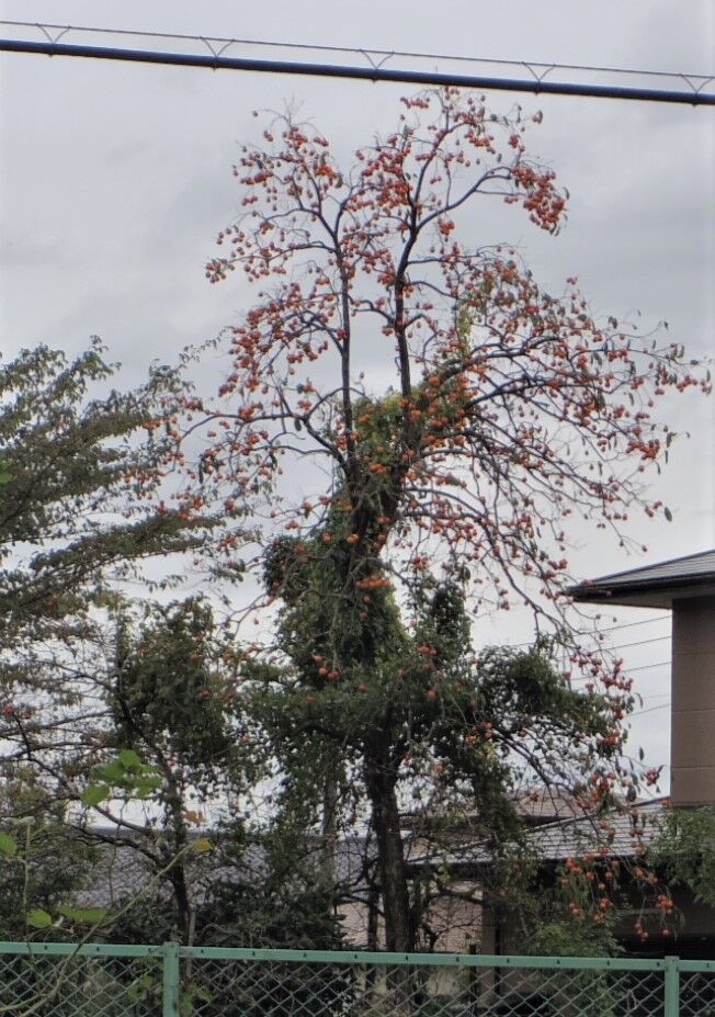 お隣の鈴生りの柿、渋柿のようですがお見事